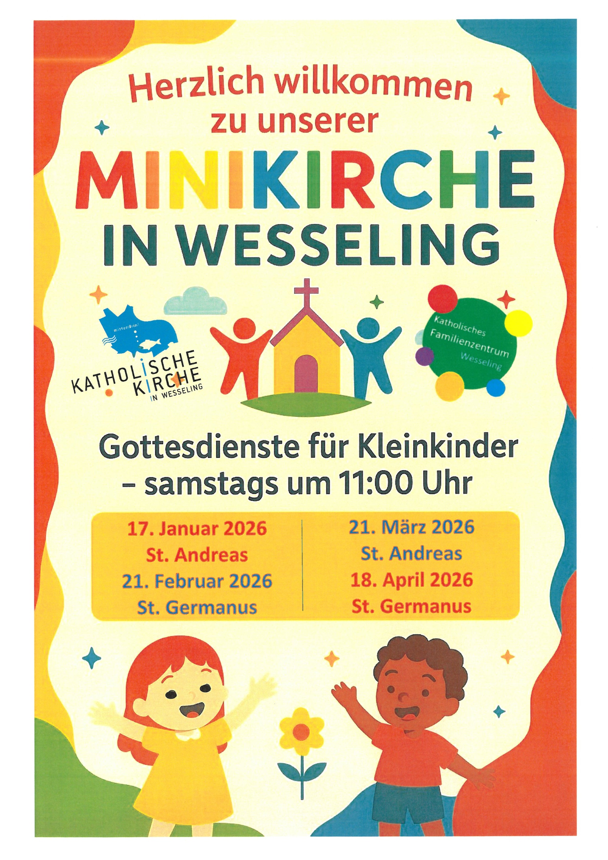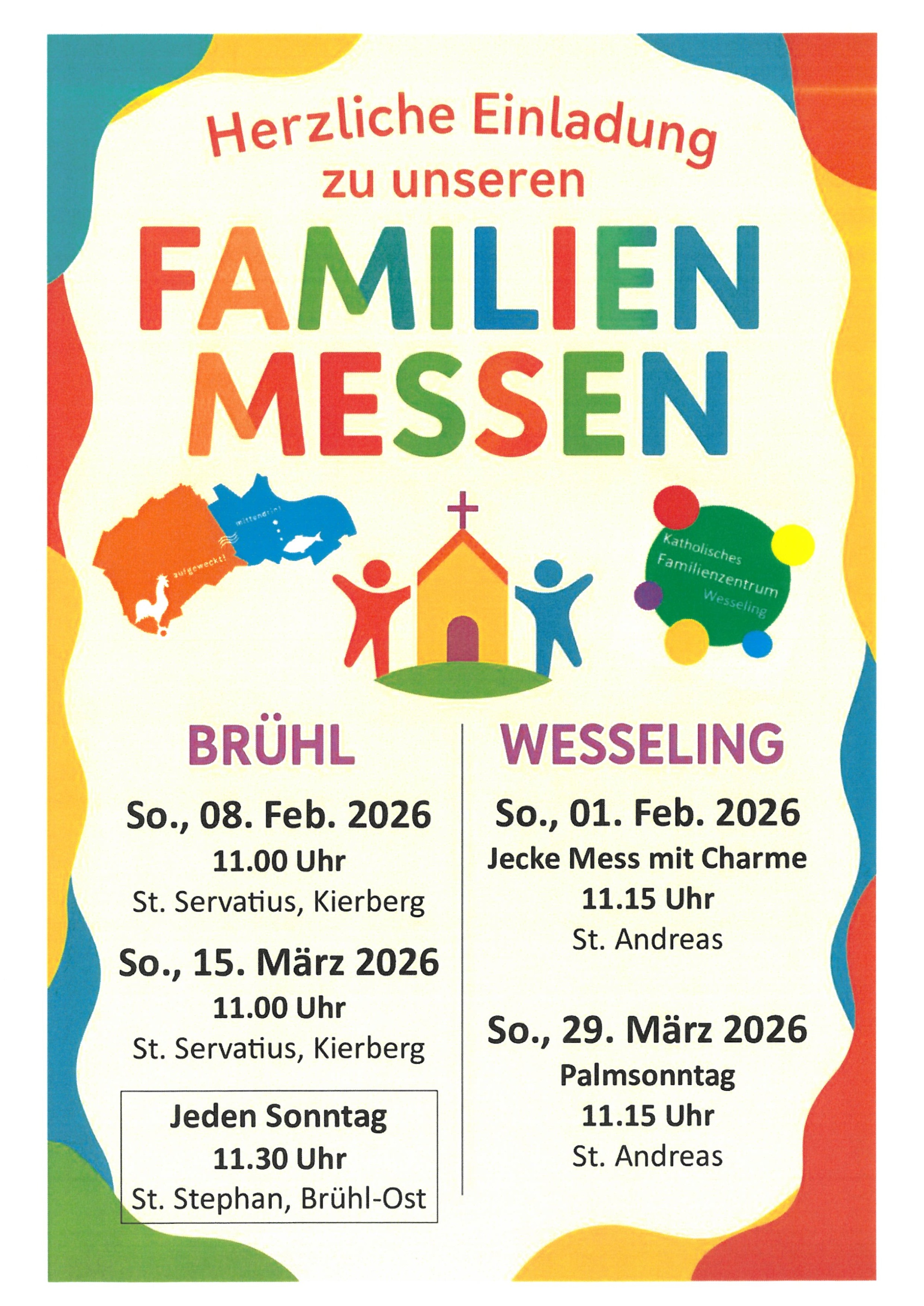 An allen Sonntagen können Familien Gottesdienste besuchen, die in der Gestaltung einen Schwerpunkt auf eine kindgerechte Katechese legen und in der Liedauswahl auf leicht und gut mitsingbare Lieder achten.
